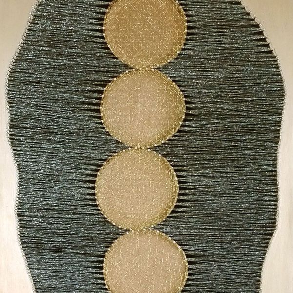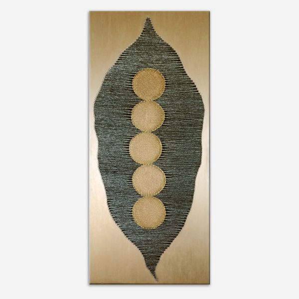 Černý lusk Obraz ze zlatých a stříbrných nití na dřevěné desce se zlatým podkladem v tenkém hliníkovém rámečkuVelikost: v.: 96 cm x š.: 41 cmCena: 4550 Kč