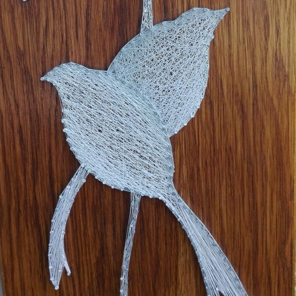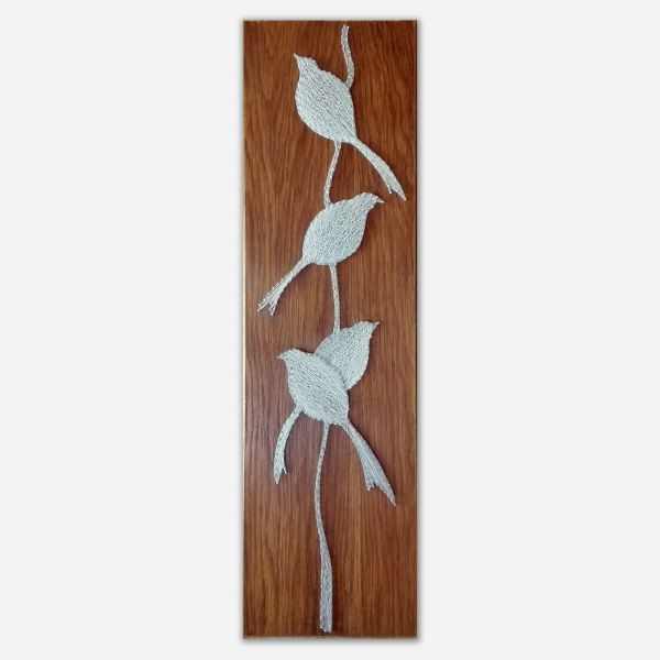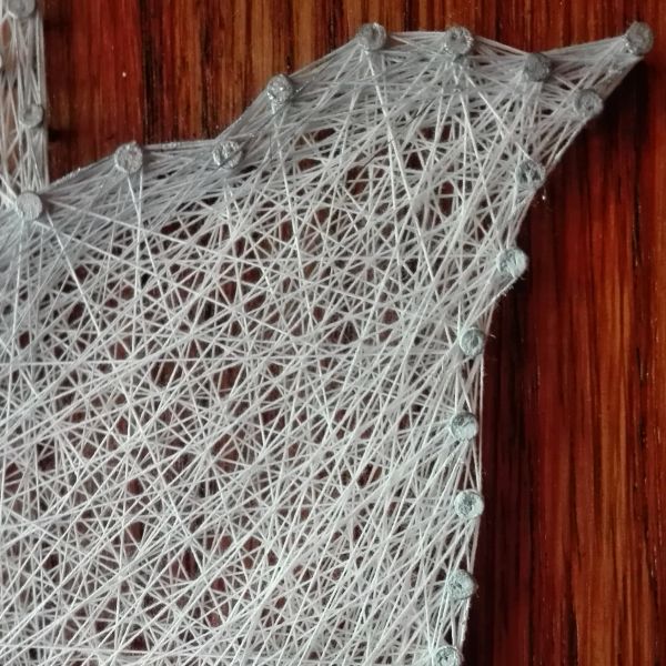 Obraz z nití na dřevěné desce