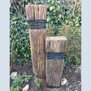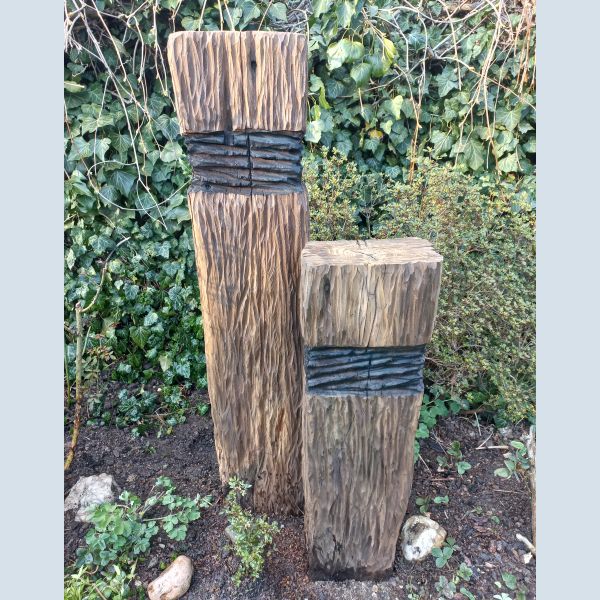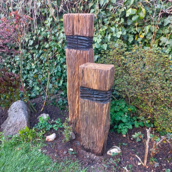 Ukázka sochy z dřevěných pražců v zahradě