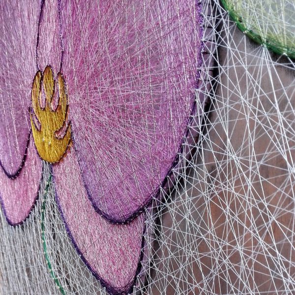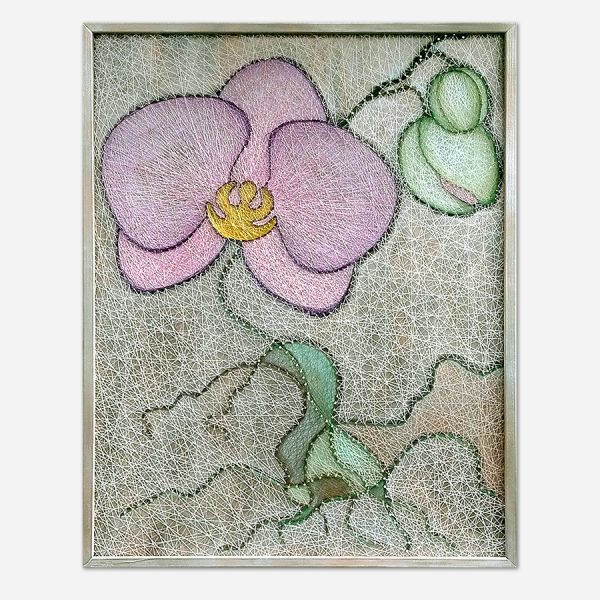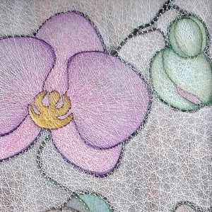 Růžová orchidej Obraz z nití na dřevěné desce se stříbrnozlatým podkladem v dřevěném rámečkuVelikost: v. 80 cm x š. 60 cmCena: 4550 Kč