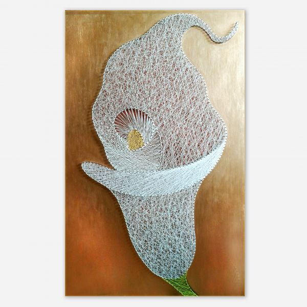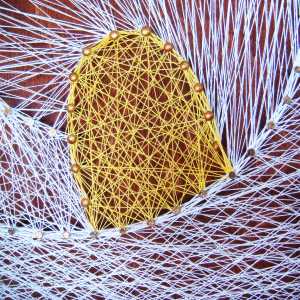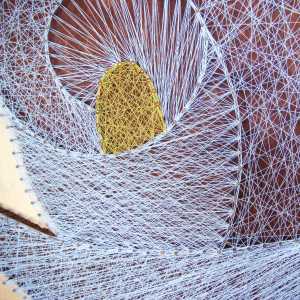 Obraz z nití na dřevěné desce se zlatým podkladem